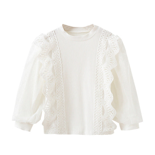 Baby Girl Solid Color Mesh Hollow Carved Design Princess Shirt