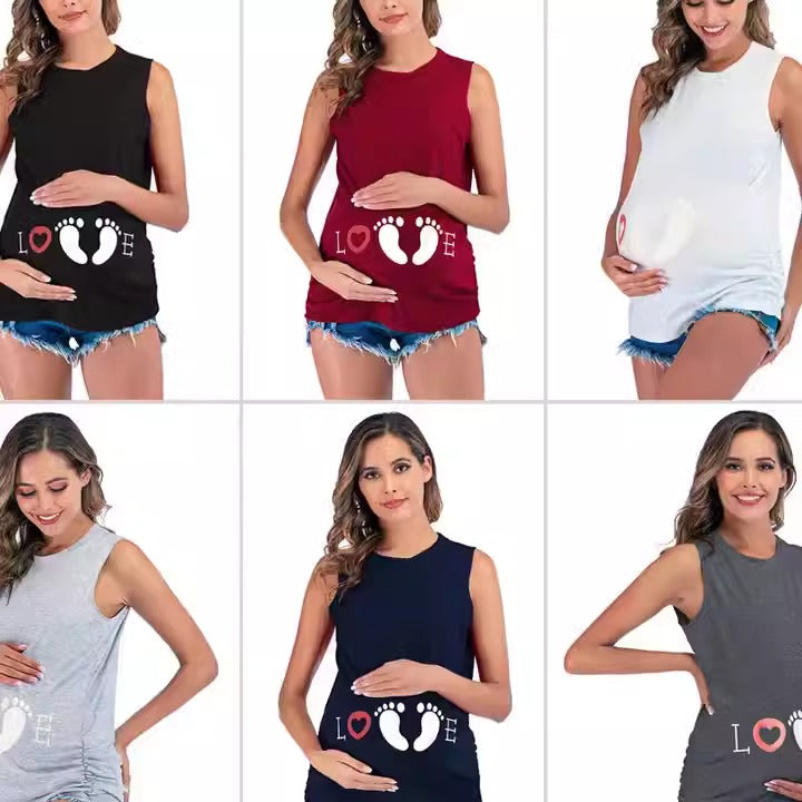 European and American round neck printed new summer fashion oversized maternity top T-shirt top